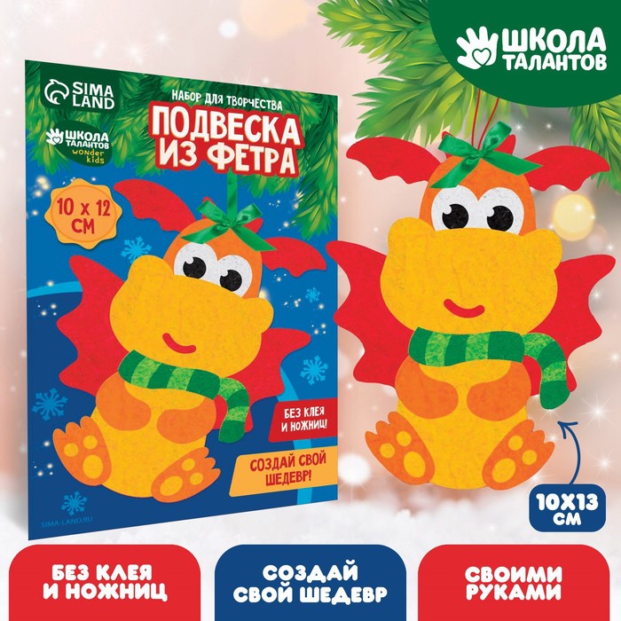 With a set for creativity, the child will create a soft New Year's pendant for the Christmas tree.