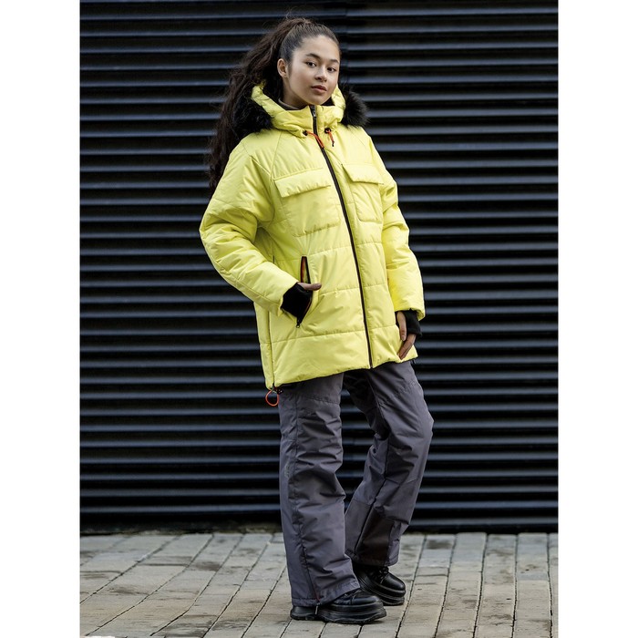 The city set for girls attracts attention with its flowers and neon fittings. A convenient jacket on a hardener and a windproof bar, a glass, a reinglane sleeves, on the sides of a zipper, overhead pockets with valves and rubberized pockets on a zipper, a hood on tights and with a removable edge, buttons are closed with a visor, decorated with a thermal shift. Pants on an elastic belt with removable straps for adjusting the length, on the sides of the rubble pockets on a bright zipper, on the bottom of the insert on the zipper, decorated with a thermalrotransfer.
