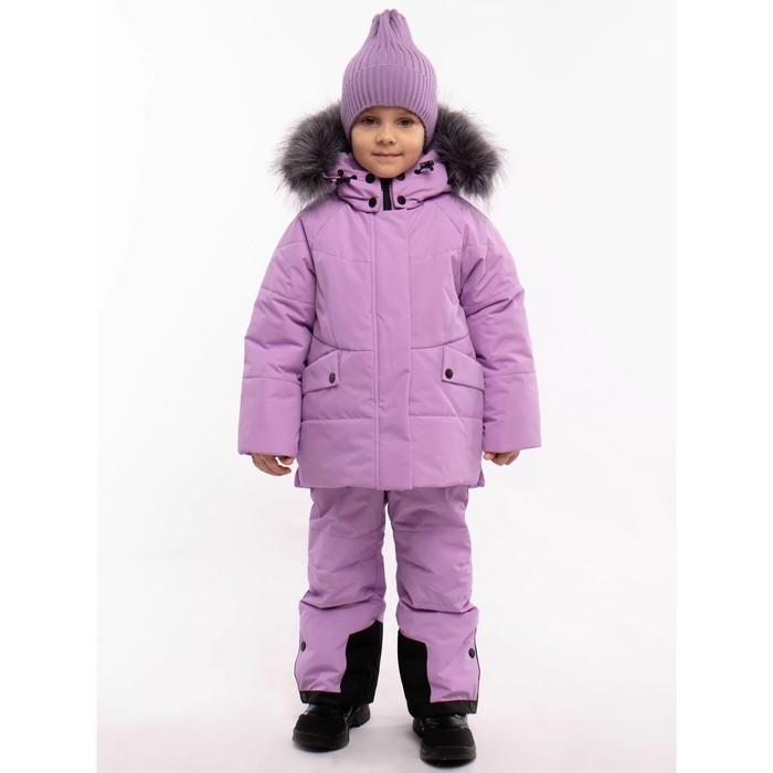 a convenient glass jacket with a zipper and a bar with buttons, with a weight on the bottom of the jacket and a hood, a removable artificial edge. The sleeves provide knitted snow protection cuffs. The jacket is decorated with reflective elements on the trousers and the back of the jacket.