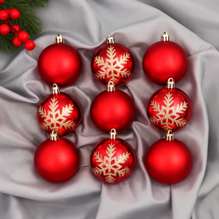 Set of balls plastic D-6 cm, 9 pcs "Adele" snowflakes, red