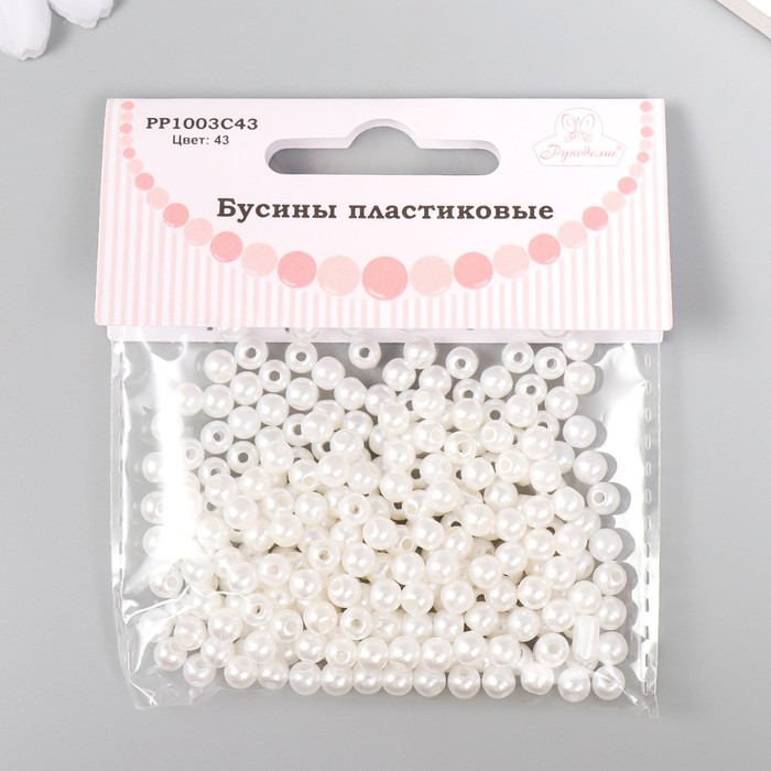 Set of beads "needlework" plastic, diameter 5 mm, 25 g, snow-white