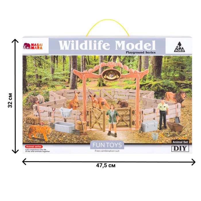 - the gaming set is reduced copies of real animals, people and buildings.