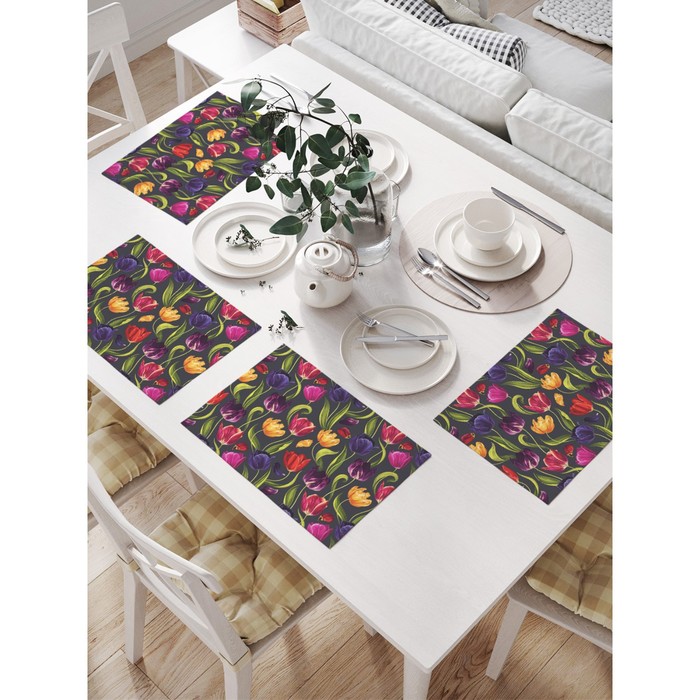 Set of napkins for setting the table "Multi -colored tulips", rectangular, size 32x46 cm, 4 pcs