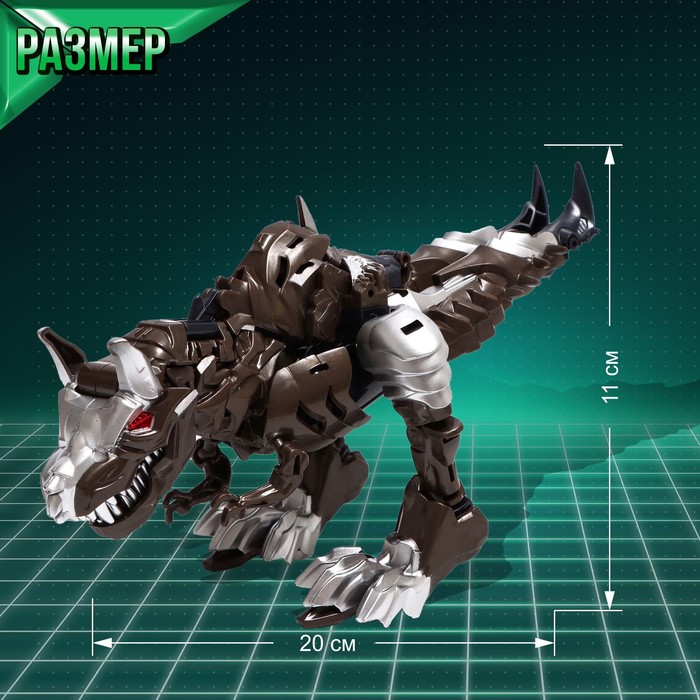 Features of the set- Size in the form of a dinosaur / robot: 20 × 11.5 × 11 cm / 14 , 5 × 7 × 21 cm.