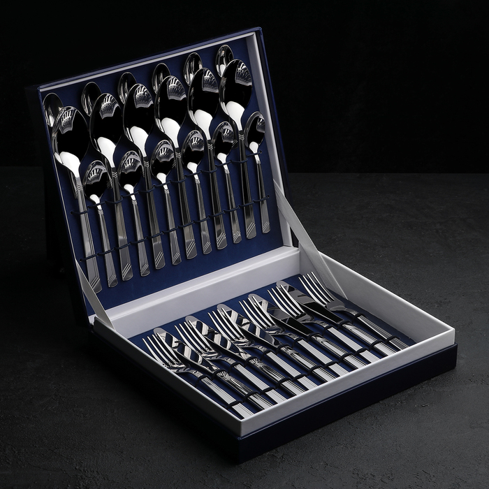 Set of table "appetite", thickness 2 mm, decorative box, 30 objects, silver color