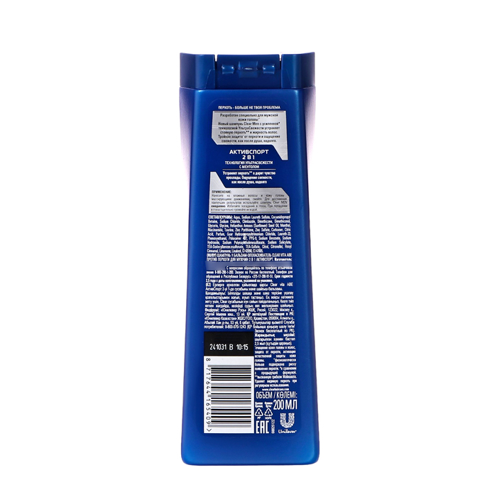 Shampoo and hair balm Clear Men 2 in 1 "Activity", 200 ml