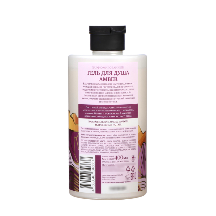 Plunge into the world of luxury and sophistication. Feel the magic of oriental aromas and enjoy it daily. This shower gel with the perfume composition of the eastern direction will give you not only purity and freshness, but also a real aesthetic experience. The shower gel delicately removes pollution from the skin, without causing its overdrying or tightening. Supports the optimal level of moisture, giving the skin incredible softness and silkiness. Its delicate foam envelops your body with an exquisite aroma of the amber, creating a feeling of inner harmony and tranquility. The aroma begins with attractive notes of milk chocolate, cotton sugar and refreshing vanilla, with light shades of cloves and nutmeg. The aroma is based on amberous, patchouli and wood notes.