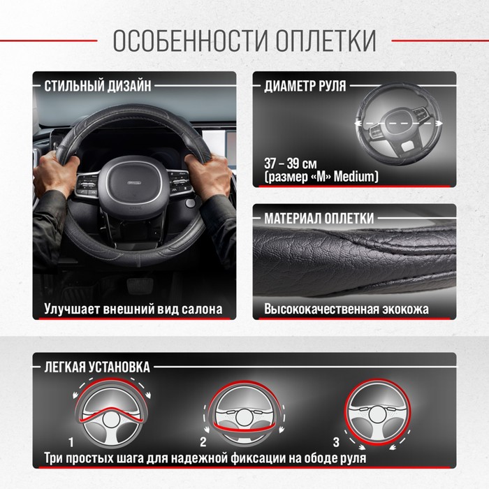 SkyWay braid, eco-leather, Standart-3 m, black, s01102483