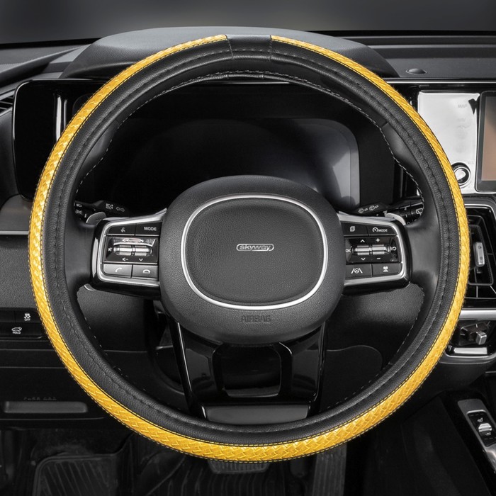 SkyWay braid, leather, size m, black, with a yellow wicker insert, s01102372