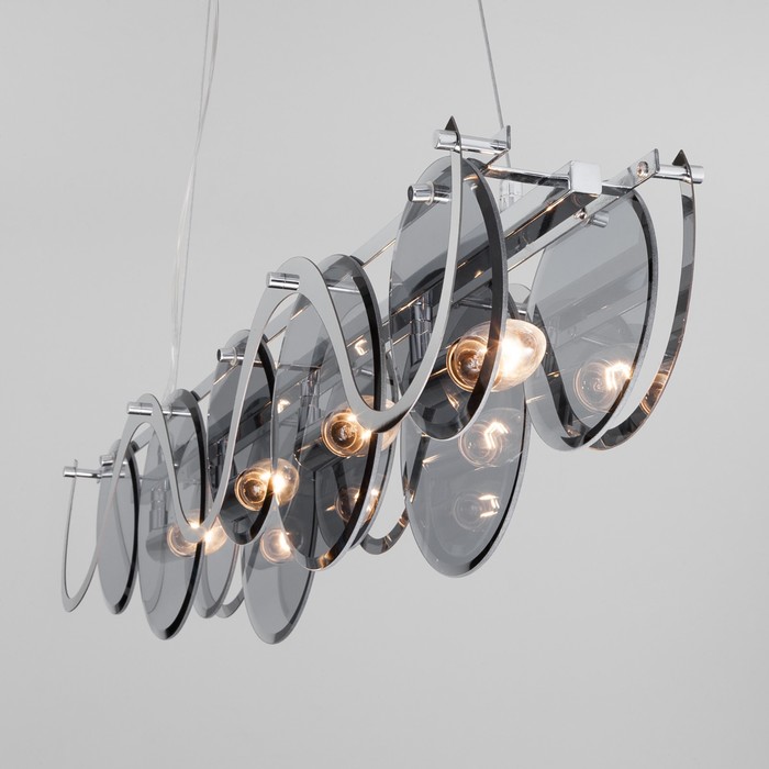 Suspended chandelier with Wi-Fi 353/4 Smart (321/4) It will help organize high -quality lighting on an area of 12 m² and decorate the modern interior. The lamp with glass ceiling in smoky color is equipped with a suspension height adjustment system that allows you to place the product at different levels, reducing or increasing the angle of dispersion of the light flow. This lamp is easily installed on the ceiling using a bar. Free application is available on Google Play and AppStore for iOS and Android devices.