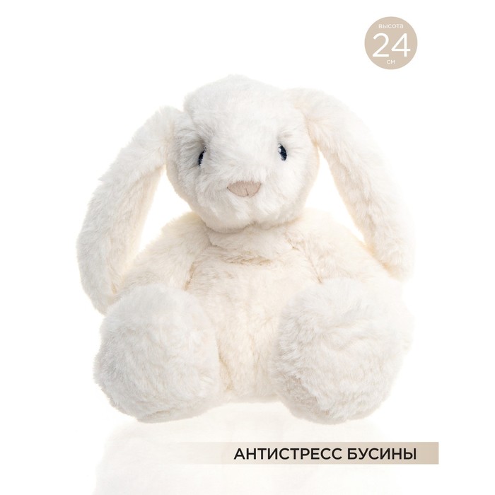 A small white bunny with a pink nose is so cute that it is impossible to pass by him. He has hanging long ears and dangling legs with anti -stress beads inside. Beads are also in the body of bunnies. Thanks to a pleasant to the touch fur and beads, I want to constantly hold the hare in my hands. Black eyes are embroidered with threads, so such a toy is suitable even for the smallest.