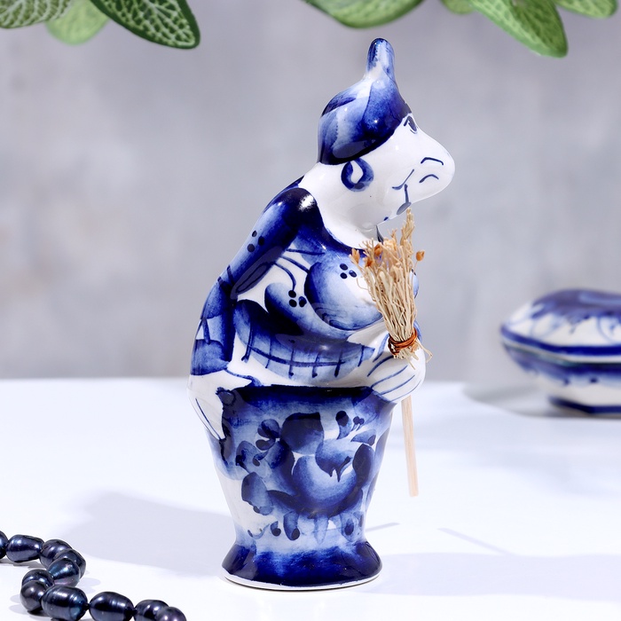 Souvenir "Baba Yaga", with a broom, Gzhel