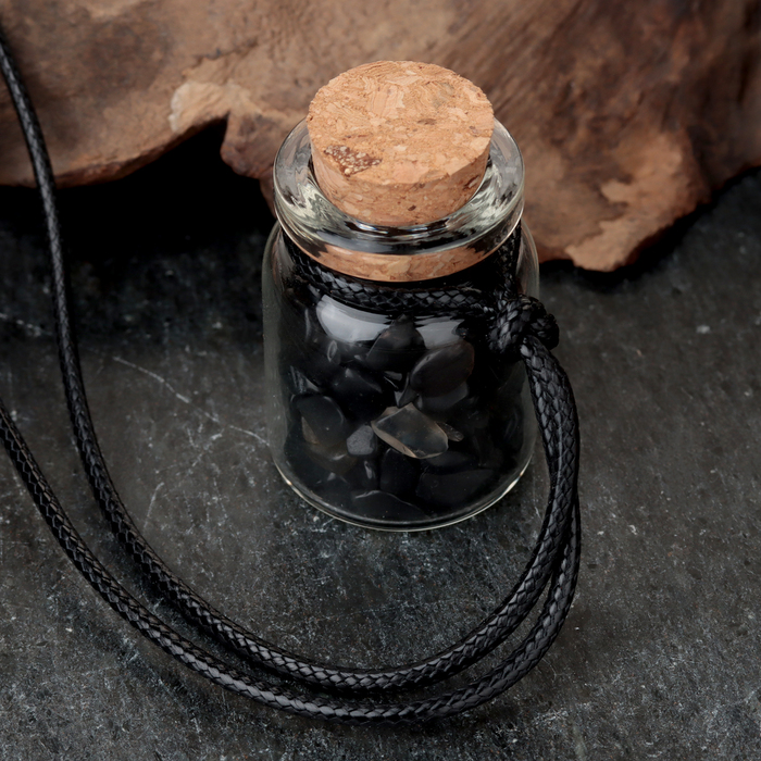 Obsidian, like a sponge, absorbs all the negativity, and after that - mirrors it. The overwhelming stone energy will force a person to do something, strive for his goal. Obsidian can often be found with businessmen. It normalizes the energy background, helps to improve mood, helps to fight anger. A bottle with natural stones to fulfill desires. It can be used as a jewelry, as a talisman for working with chakras and media, can be worn in a purse or put at home to cleanse space.