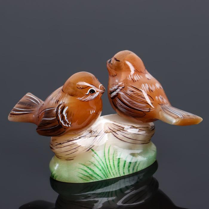 Souvenir sparrow-pair, 6x11 cm, selenite