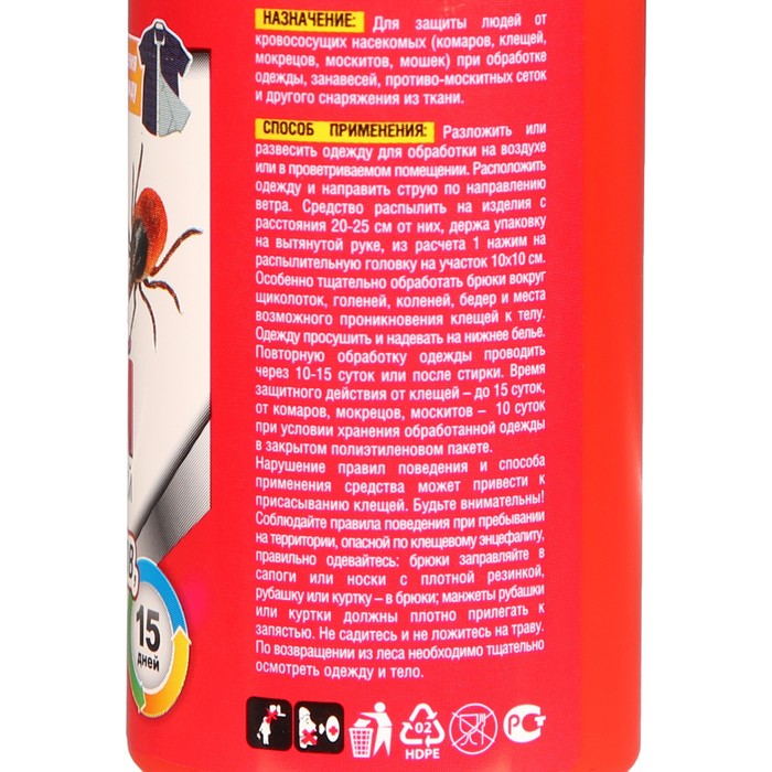 flying insects (flies, mosquitoes, midges): processing start with the opposite of the end of the room, gradually retreating to the entrance, pressing the sprayer and directing the stream in the air and to the places of accumulation of insects. Processing with closed windows and doors. To process the room with an area of 25-30 sq.m, it is enough to spray for 3-5 seconds. Mol: direct the stream from a distance of 20 cm to the surface of products made of wool and fur, as well as the place of storage