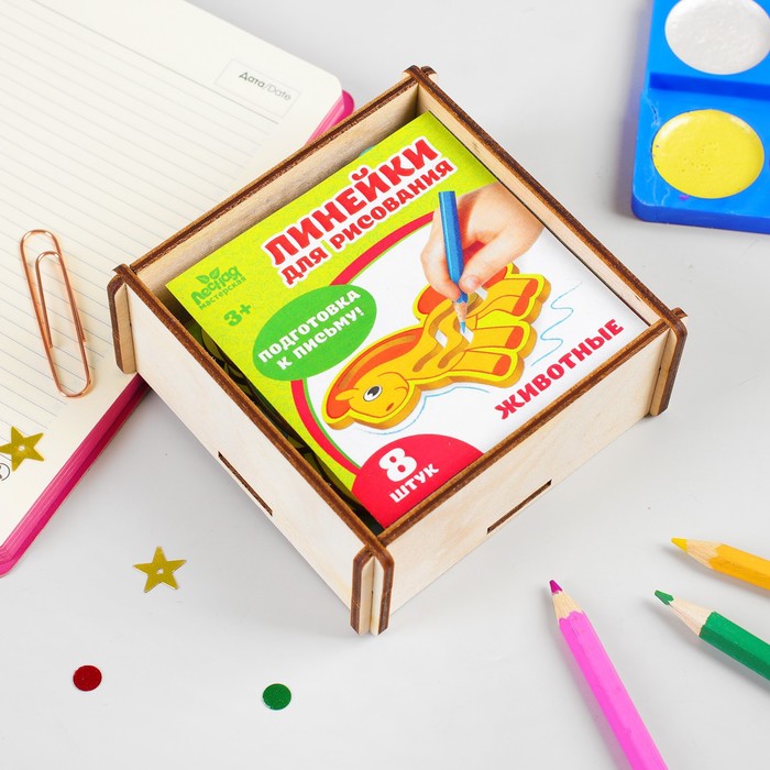 Stencils for drawing "animals", drawing is glued