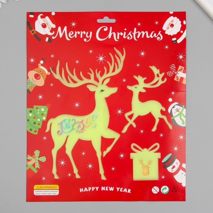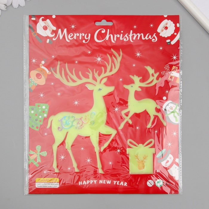 Stick phosphorus plastic "Deer and gift" set 3 pcs 28.5x23.5 cm
