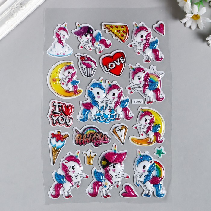 Sticker Plastic volumetric "unicorns" mix 28x15 cm