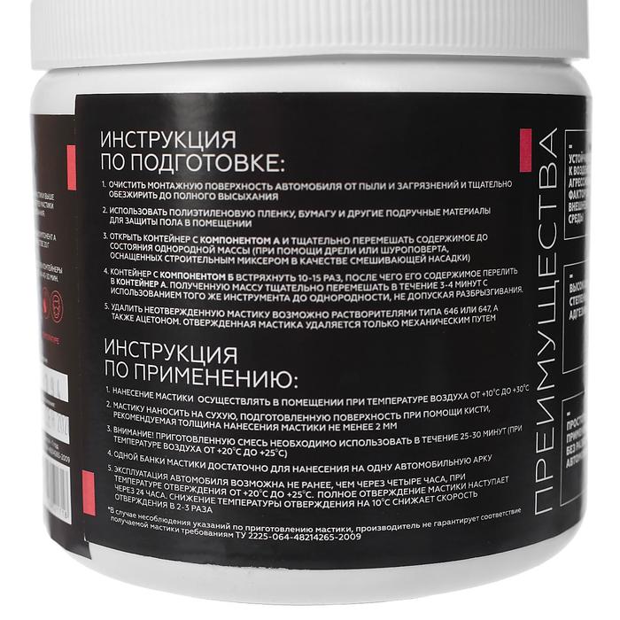 Liquid vibroplast ”is a two -component system consisting of an adhesive component (vibration -absorbing mastic) and hardener.