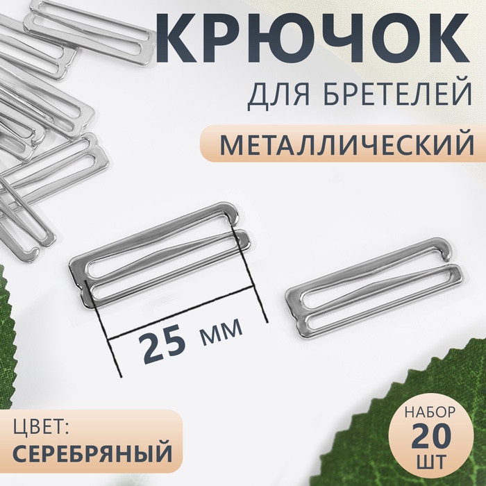 Strap hook, metal, 25 mm, 20 pcs, silver color