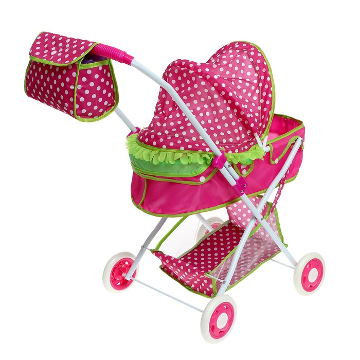 Stroller for dolls "Happy peanut" is universal, with a basket and bag