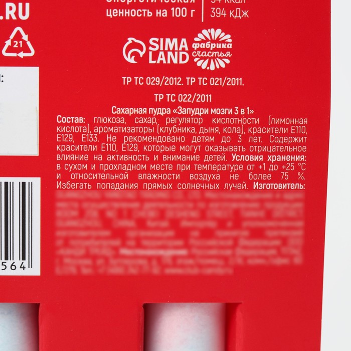 Composition: glucose, sugar, acidity regulator (citric acid), flavorings (strawberries, melon, stake), dyes E110, E129, E133.