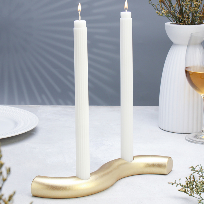 Summary "Waves" for two candles from gypsum, 25x6x3cm, gold