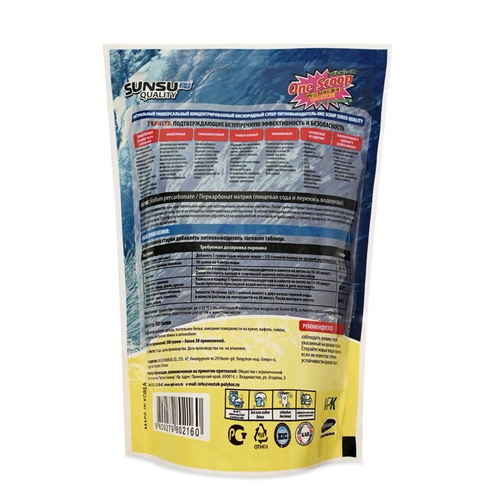 The universal staineler effectively displays spots from all over: clothing, bedding, outer surfaces in the kitchen, tiles, carpets, upholstered furniture, and internal upholstery in the car. Effectively eliminates 99.9% of pollution. Ecological, safe for humans and the environment. Hypoallergenic, without dyes and flavors, suitable for washing children's linen. There is no clothing in fibers, it is completely washed out, leaving no traces of the detergent on the fabric. Universal, suitable for all types of linen: white, black, color. Saves color, prolongs the presentable type of various fabrics. The thing will last much longer. Safe, does not contain: phosphates, phosphonates, acrylates, aggressive Pav, SLS, Sles, Edta, dyes, artificial flavors, optical bleach. Technological and convenient to use. Suitable for machine washing, for manual washing, for soaking, for cleaning rooms and washing external surfaces in the kitchen, dignity, car, carpets, furniture.
