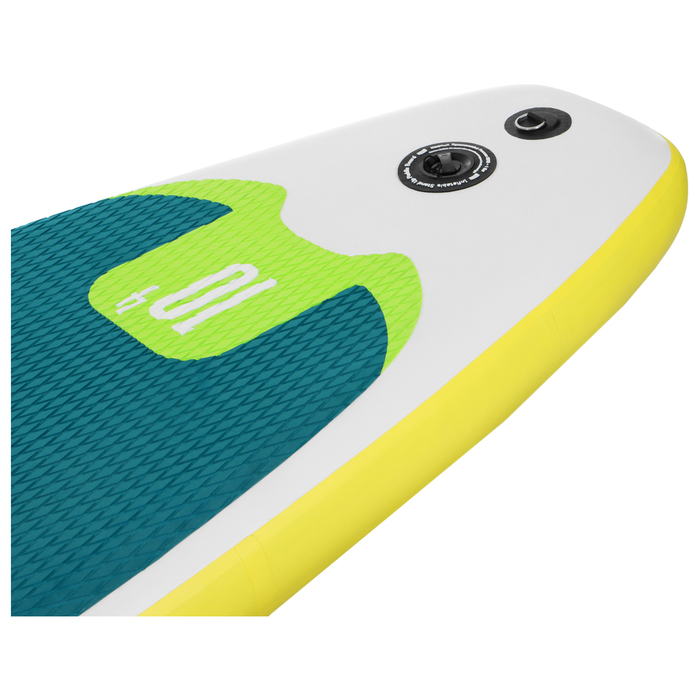 - The locking pressure valve with damage protection provides tightness. The button system helps to easily lower the pressure in the board by clicking the button in the valve.