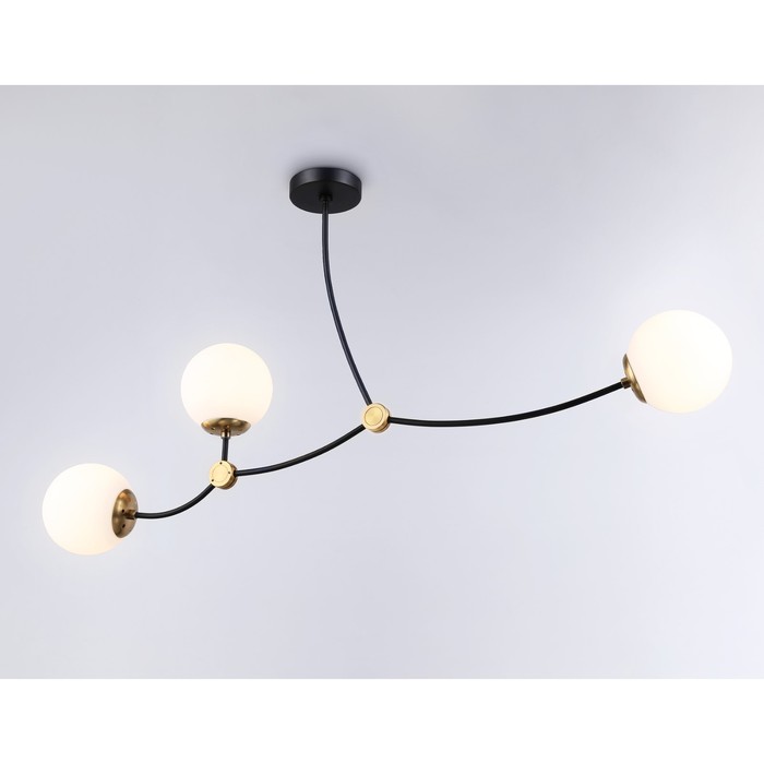 - The lamp is made of a metal frame, black and the color of bronze and glass white matte plafond