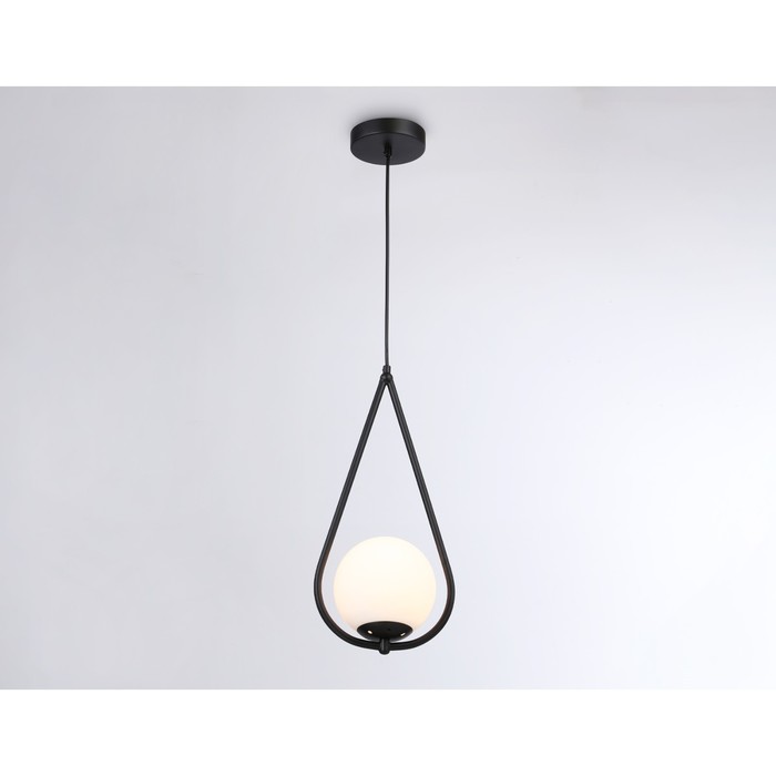 - The lamp is made of a black metal frame and a glass white matte ceiling
