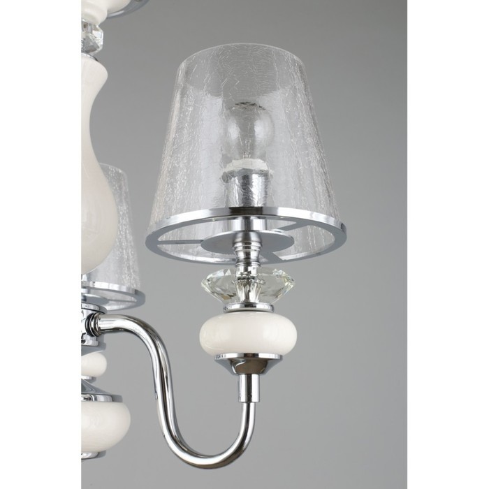 - The chandelier is made in a classic style, decorated with crystal.
