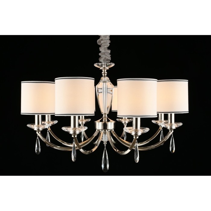 - Stylish Bra and a beautiful suspended pendant The chandelier of eight lamps are made in a classic style and gracefully decorated with hasty -shaped pendants of crystal, which perfectly shimmers in the rays of daylight and during evening lighting with lamps.