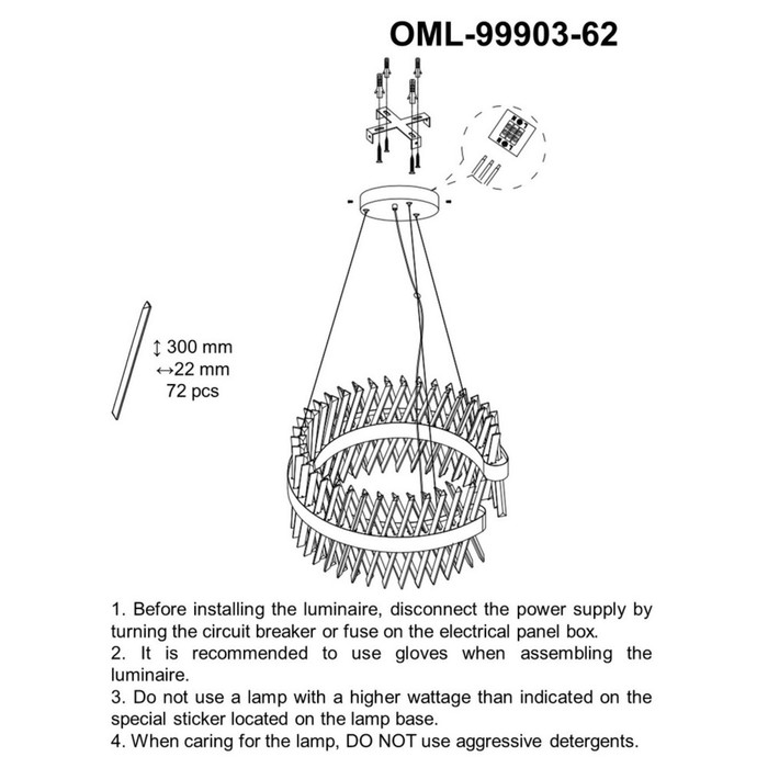 - 1 LED lamp with a capacity of 62 watts is installed in the chandelier.