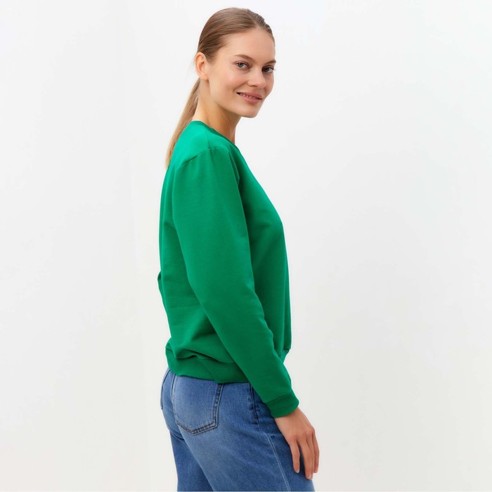 Sweatshirt is female, color is bright green, size 50