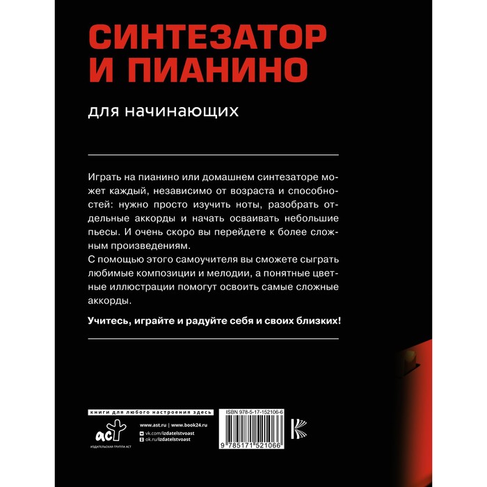 Everyone can play a piano or home synthesizer, regardless of age and abilities: you just need to study the notes, disassemble individual chords and start mastering small plays. And very soon you will go to more complex works. With the help of this tutorial, you can play your favorite compositions and melodies, and understandable color illustrations will help to master the most complex chords. Learn, play and please yourself and your loved ones!