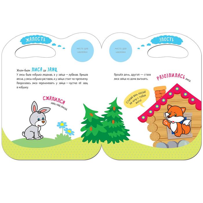 This bright book with stickers will introduce the child with joy, fear and other emotions. In this, his favorite Russian folk tale “Zayushkina hut.” So he will learn to recognize the emotions and mood of fairy -tale heroes, empathize with them.