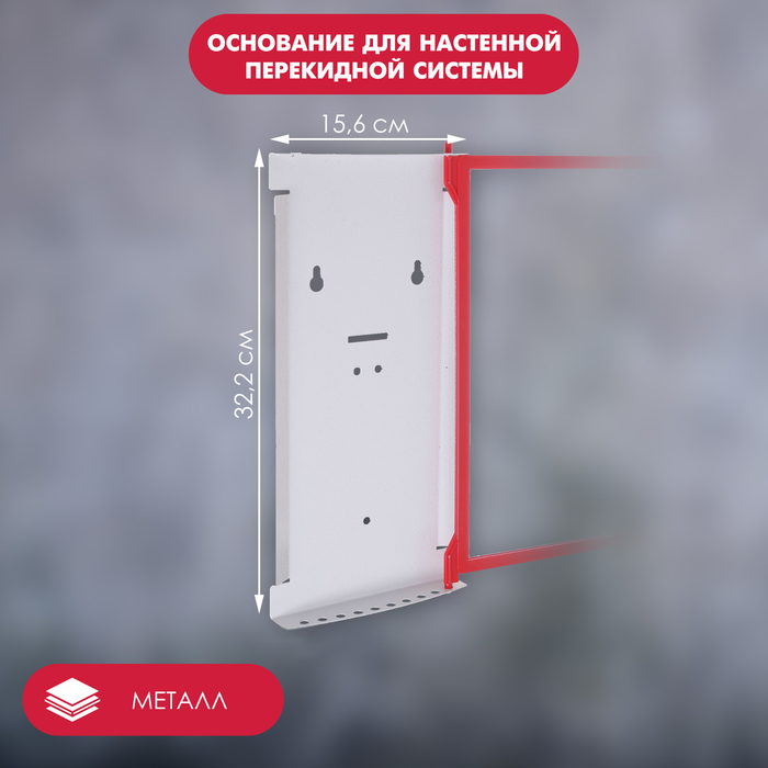 The base for the wall -out transoving system A4 format. The wall holder is made of metal, has two holes “keyhole” for fastening on the wall. Enhanced plastic frames (color to choose) are used, which are equipped with anti -glazing plastic protectors.