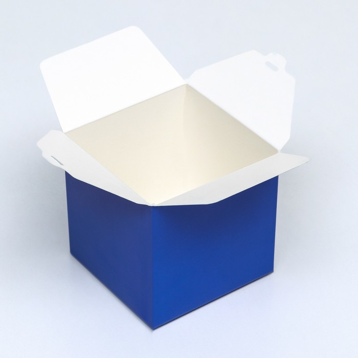 The box is folding, square, blue, 8 x 8 x 8 cm,