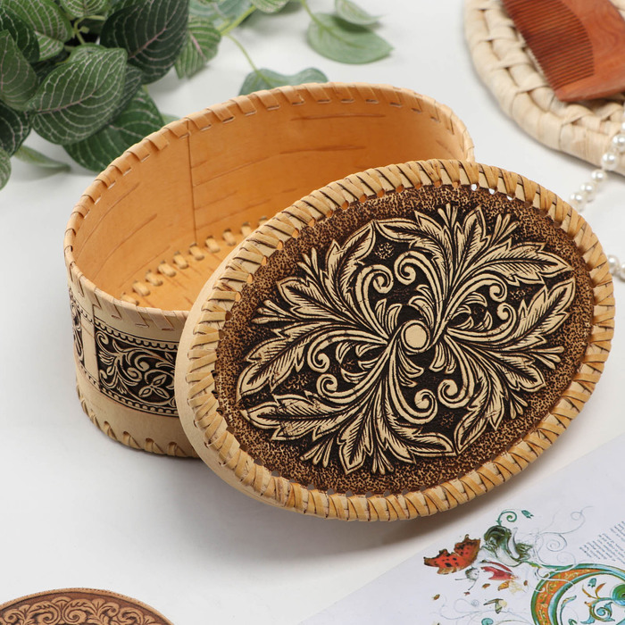 The box "pattern", large. oval, 18.5x13x8 cm, birch bark