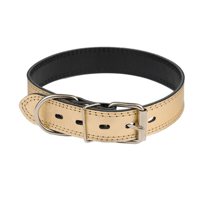 The collar is two-layer leather, width 3.5 cm, Osh 41-51 cm, gold