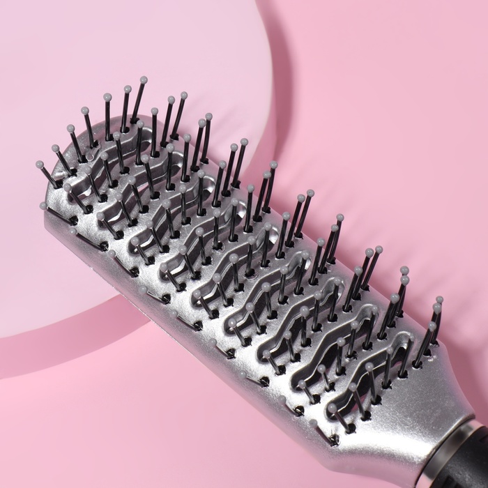 The comb is massage, ventilated, 5 × 23 cm, silver/black color