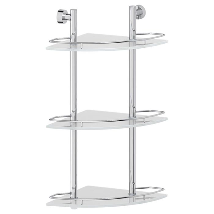 The corner shelf is three -tier, width 28 cm, matte glass, chrome