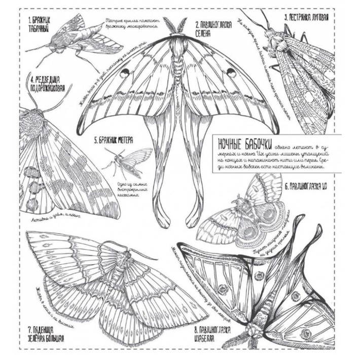 In the coloring of 35 posters, each of which shows animals, combined according to a certain principle: flying insects, inhabitants of coral reefs, cats, etc. Each animal is signed. On the back of the sheet, the reader will find interesting facts about these animals and a description of their color.