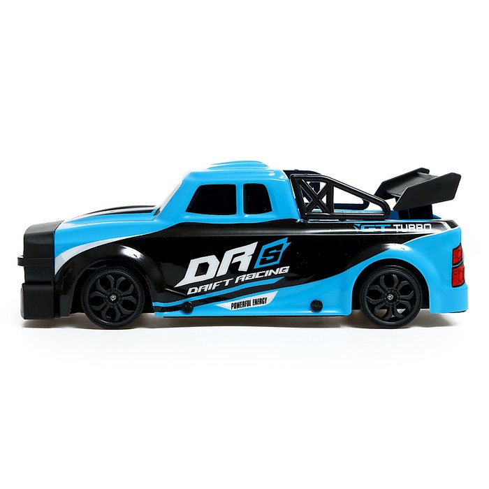 The drift machine, radio control, with interchangeable wheels, with a battery, blue