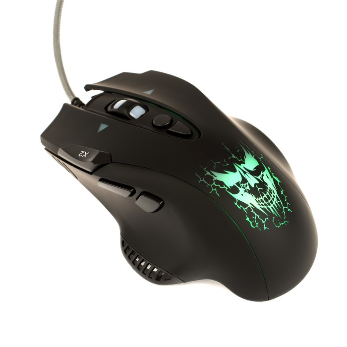 The mouse Qumo devastator m12, game, wired, 8 buttons, backlight, 3200 dpi, USB, black