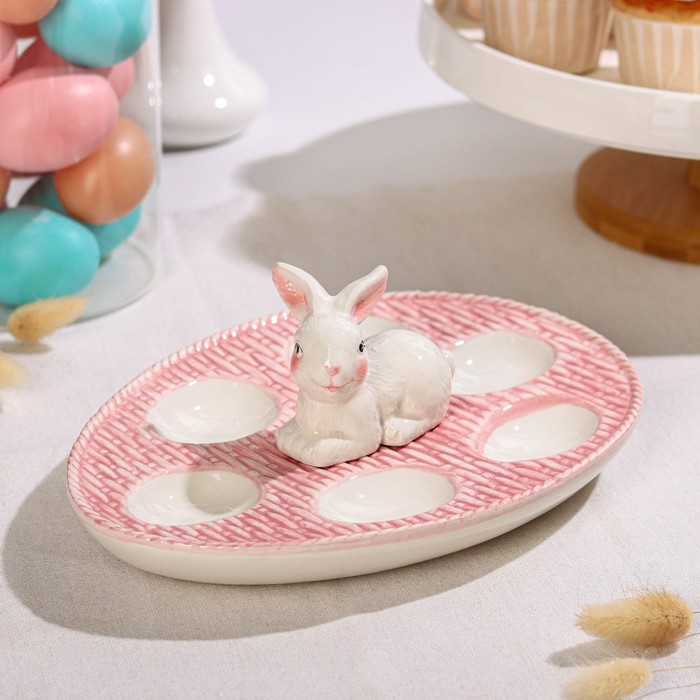Egg stand will be an original solution for serving during Easter celebrations and other magnificent holidays. The dishes are made of dolomite and decorated with a funny rabbit! The original product design makes it a harmonious addition to any table design.