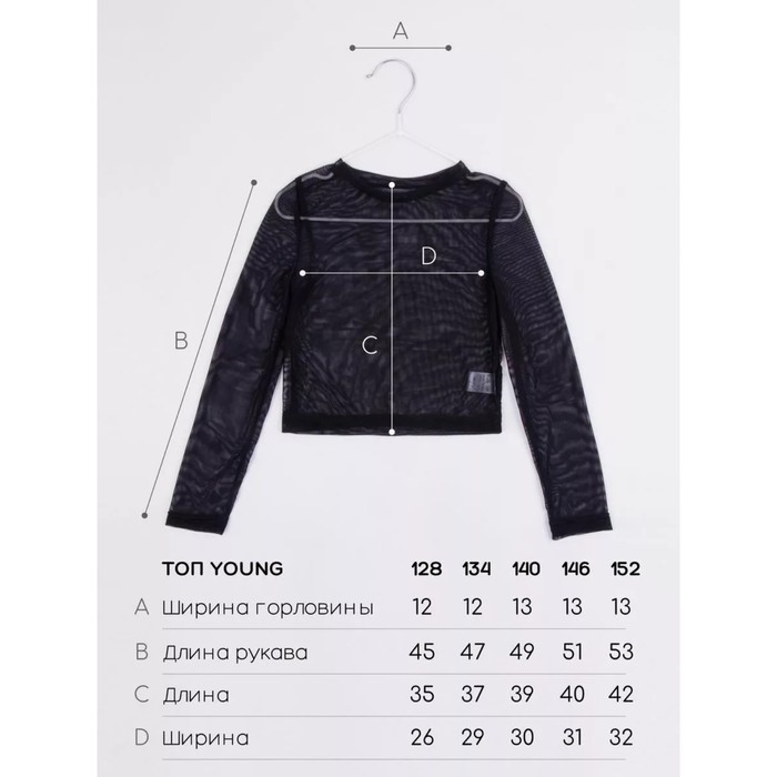 TOP for girls, height 128 cm, black color