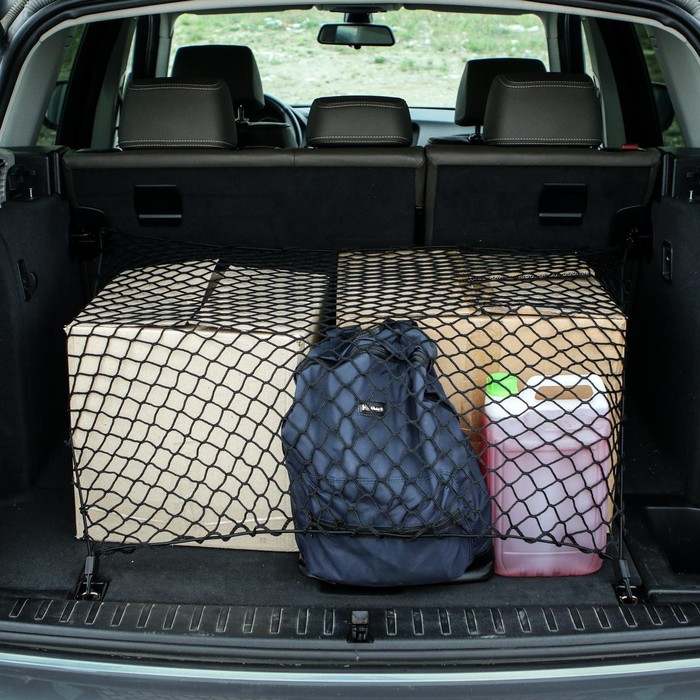 Luggage floor Torso Torso size 90x75 cm with 4 plastic hooks - a useful accessory for a car designed to fix and storage of various items in the trunk. The grid is easily installed using hooks, which provide reliable fastening to the trunk floor. It allows you to organize a space that prevents the movement of things during the movement of the car. Strong and elastic in folded form takes up little space.