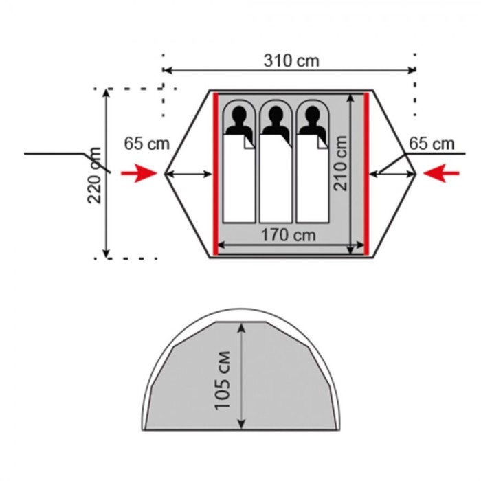 The free habic structure of the frame provides a very fast, simple, intuitive installation, larger, compared to tents of other structures, compared to tents, The residential volume of the sleeping compartment and increased wind resistance.